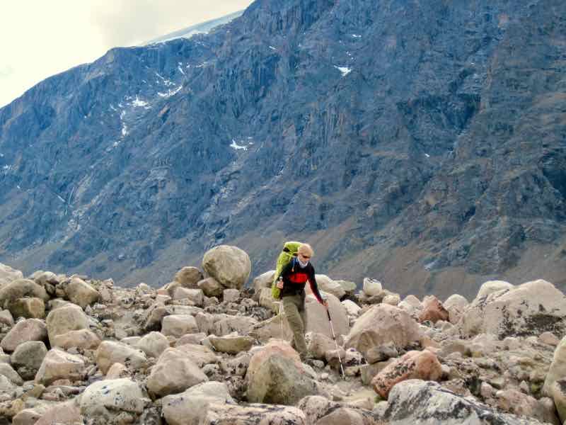 Most visitors hike the southern portion of the trail, from Overlord to Summit Lake and back. This route takes five to six days. A small but growing number of people hike the entire trail from North Pangnirtung Fiord to Overlord, South Pangnirtung Fiord. This route requires about eight days (one-way). We however, decided to be different and hike it South to North. To give ourselves extra time in case we ran into trouble with the numerous river crossings or had bad weather, we allotted 11 days. The most rugged section of trail was between Mount Thor and Glacier Lake, traversing several glacier moraines and forcing us to fiord many rivers.