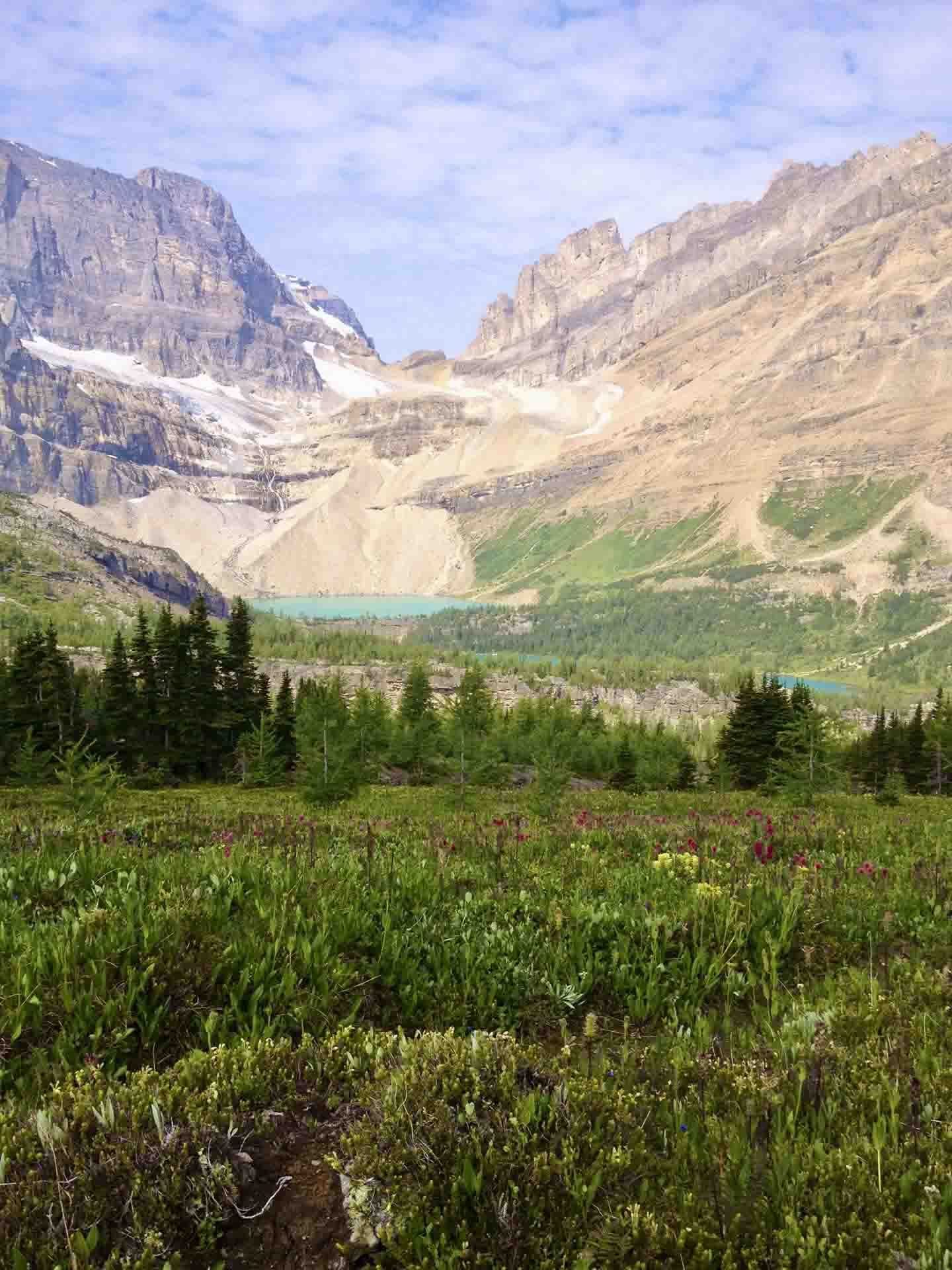 Meet at the Fish Lake parking lot near Lake Louise Ski Resort. The hike will start on the Lake Louise ski-out; the travel is on a road as we climb upwards and start to take in the amazing scenery and incredible wildflowers.