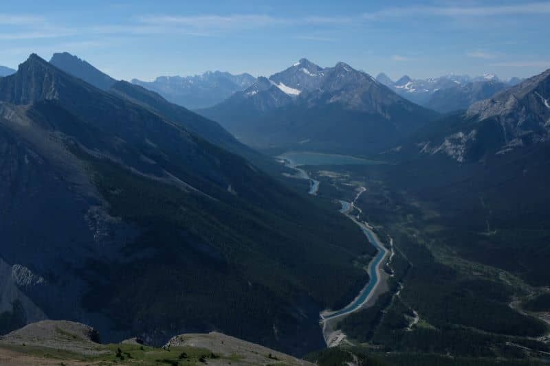 The trailhead is 9km from downtown Canmore. If you drive, arrive early on weekends as the parking lot can fill. Three Sisters Taxi runs a shuttle to the parking lot.