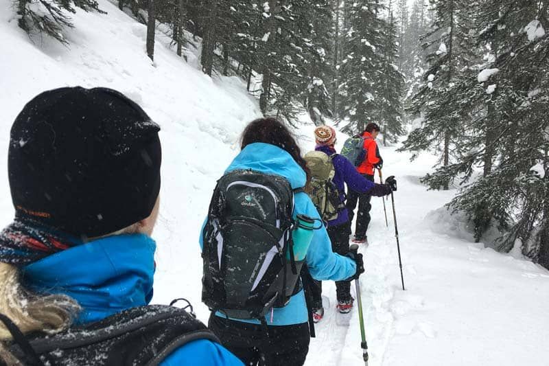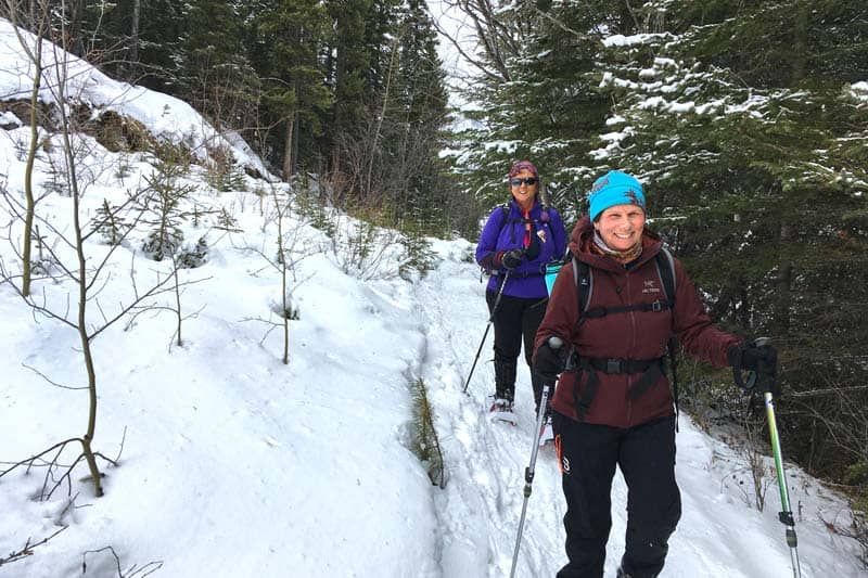 For more information on how to know where it is safe to explore on snowshoes check out our beginners guide to snowshoeing. Needing to improve on your layering system? Find out how our lead guide, Jenna, dresses for the cold weather.