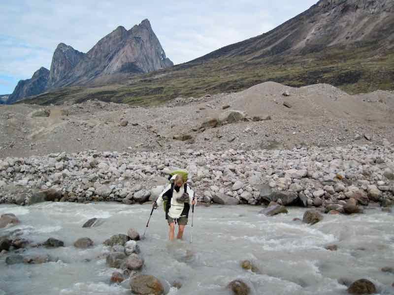 Most visitors hike the southern portion of the trail, from Overlord to Summit Lake and back. This route takes five to six days. A small but growing number of people hike the entire trail from North Pangnirtung Fiord to Overlord, South Pangnirtung Fiord. This route requires about eight days (one-way). We however, decided to be different and hike it South to North. To give ourselves extra time in case we ran into trouble with the numerous river crossings or had bad weather, we allotted 11 days. The most rugged section of trail was between Mount Thor and Glacier Lake, traversing several glacier moraines and forcing us to fiord many rivers.