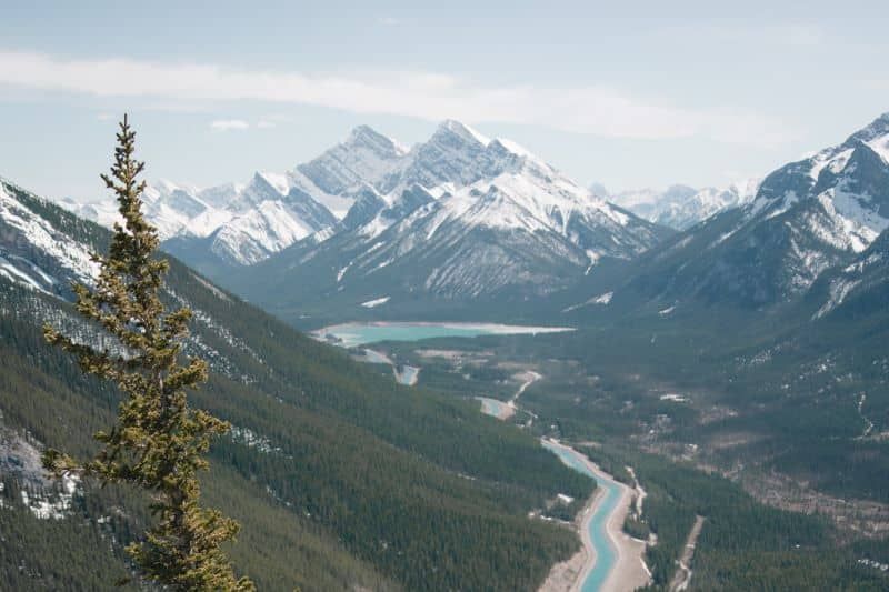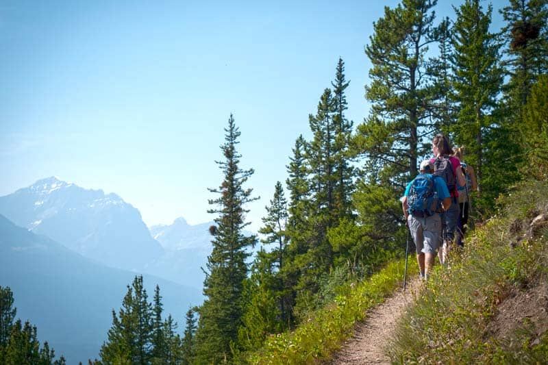 The trailhead is 9km from downtown Canmore. If you drive, arrive early on weekends as the parking lot can fill. Three Sisters Taxi runs a shuttle to the parking lot.