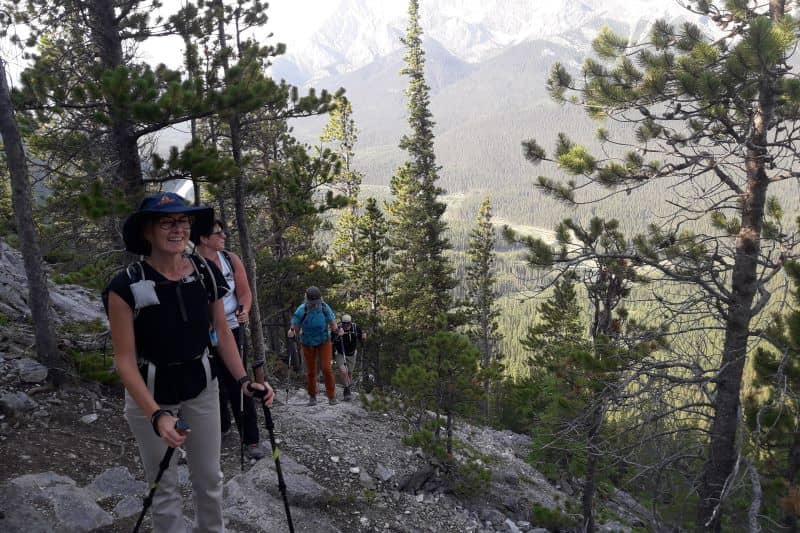 Speaking of rock climbing, there are many climbing routes that go up the cliff on the East face of Rundle, so we were careful to not knock rocks down off the ridge and onto others.