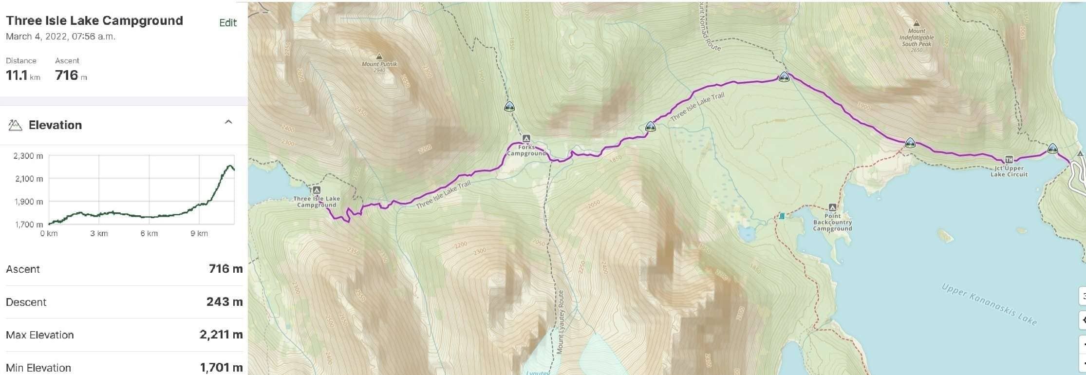 A group of 5 new hikers plan to hike to Three Isle Lake Campground, in Kananaskis (one of the best overnight hikes in Alberta). They’ve been out hiking several times and just took the Women’s Intro to Backpacking course. They are super excited to put their new skills to work, and this is the first time they are doing all the planning and navigating on their own. They want to be sure they get to camp in time to set up camp and have time to relax.