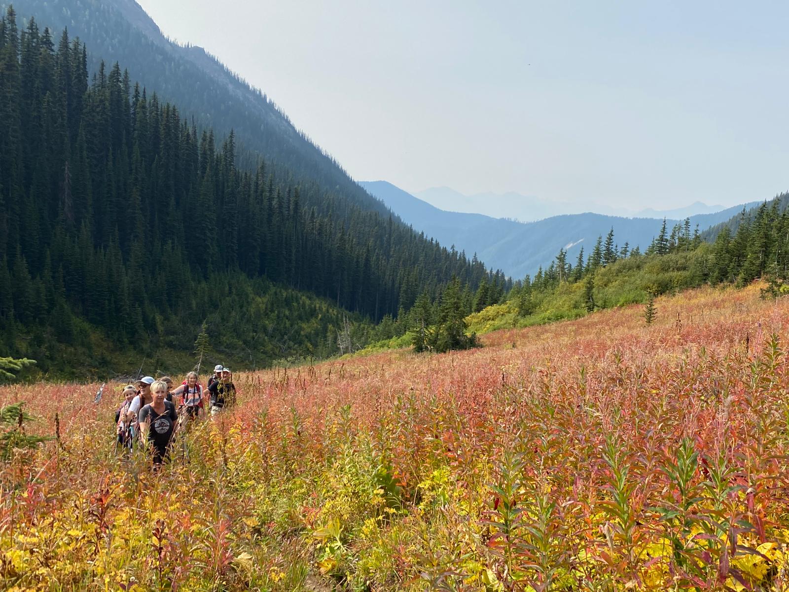 Load up the vehicles and let us get away from the crowds! Get ready for the beautiful and unique hike into Diana Lake Lodge! Walk through a lush forest and watch the expansive views of alpine meadows and wildflowers open as we ascend. Today’s hike is 7kms with 700 meters of elevation. Once at the destination make yourself comfortable, enjoy sub – alpine meadows and amazing food with great company.